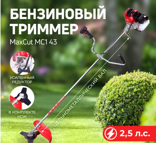 БЕНЗОТРИММЕР "MAXCUT" MC 143 (леска/нож), 1,84кВт/2,5л.с, 42,7сс, 42/26см, 7,3кг.,АКЦИЯ